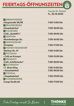 Tag der Deutschen Einheit – frische Backwaren in Rathenow und Premnitz erhältlich