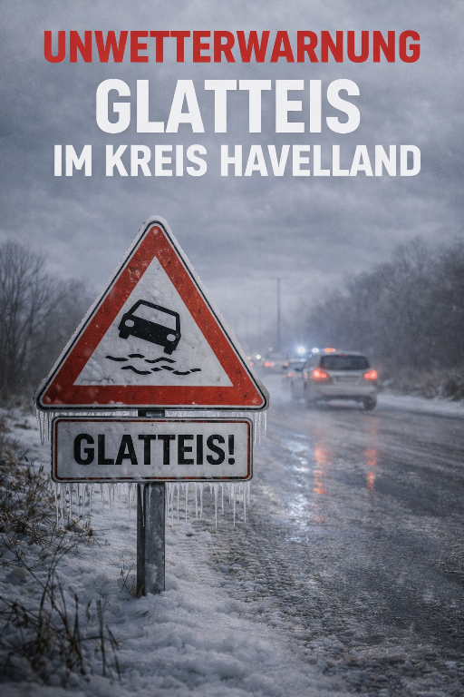 Für den Kreis Havelland hat der Deutsche Wetterdienst (DWD) eine amtliche Unwetterwarnung vor Glatteis herausgegeben.