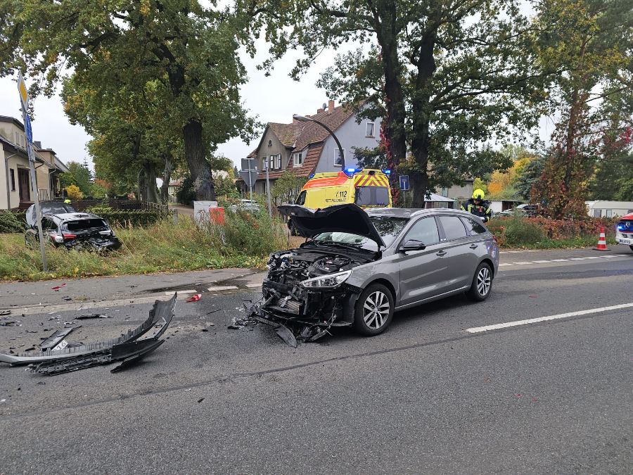 Gegen 15:46 Uhr wurden Feuerwehr, Rettungsdienst und Polizei alarmiert. Zwei Fahrzeuge waren in den Unfall verwickelt, eines davon kam von der Fahrbahn ab und blieb im Straßengraben stehen. Nach ersten Informationen gab es Verletzte, die vom Rettungsdienst Havelland versorgt wurden.