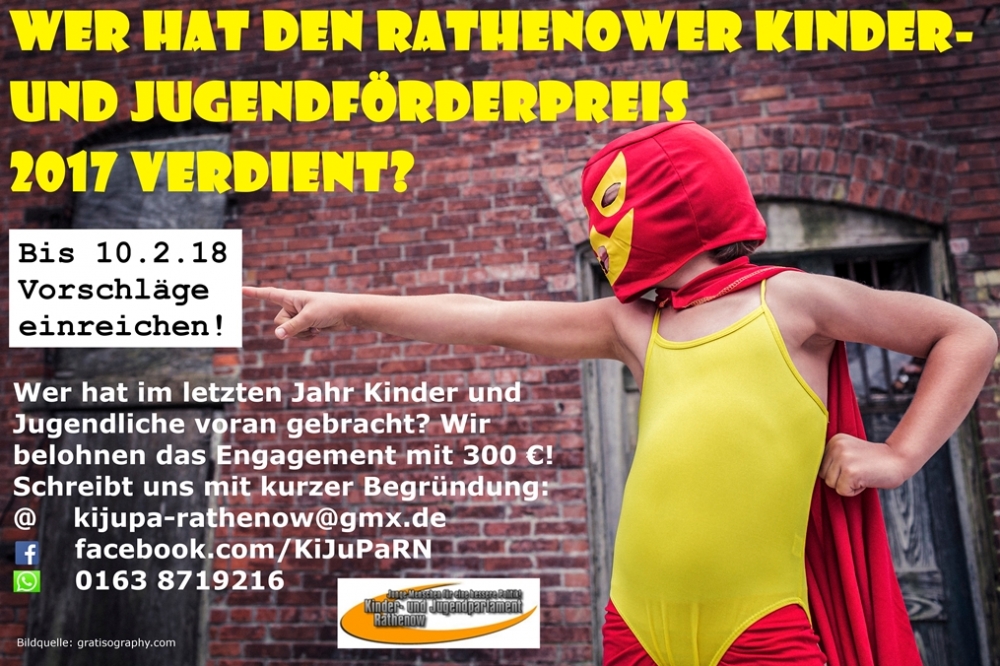 Ausschreibung des Kinder- und Jugendförderpreises 2017 durch das Kinder- und Jugendparlamentes der Stadt Rathenow.