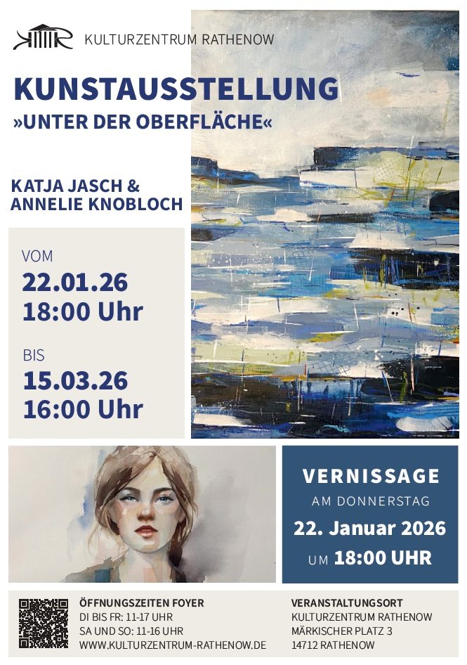 Am Donnerstag, 22. Januar, eröffnet im Kulturzentrum Rathenow eine neue Ausstellung der Künstlerinnen Katja Jasch und Annelie Knobloch. Ausgangspunkt ist die Frage, was unter der Oberfläche liegt – jenseits von Fassade, Stuck und sichtbarer Struktur.