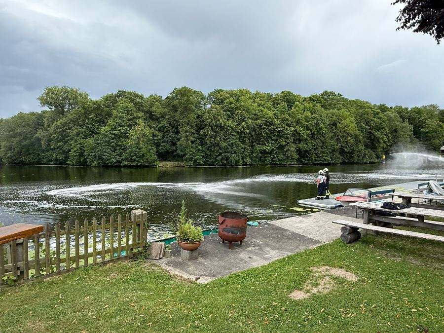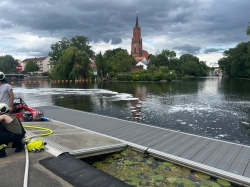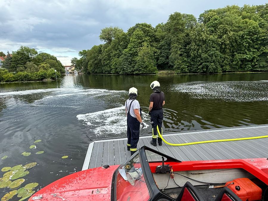 Rathenow, 07.07.2025 – Am Montagnachmittag wurde die Feuerwehr gegen 14:24 Uhr zu einem Einsatz am Mühlendamm alarmiert. Auf der Havel waren etwa 300 Quadratmeter Betriebsmittel auf der Wasseroberfläche sichtbar geworden.
