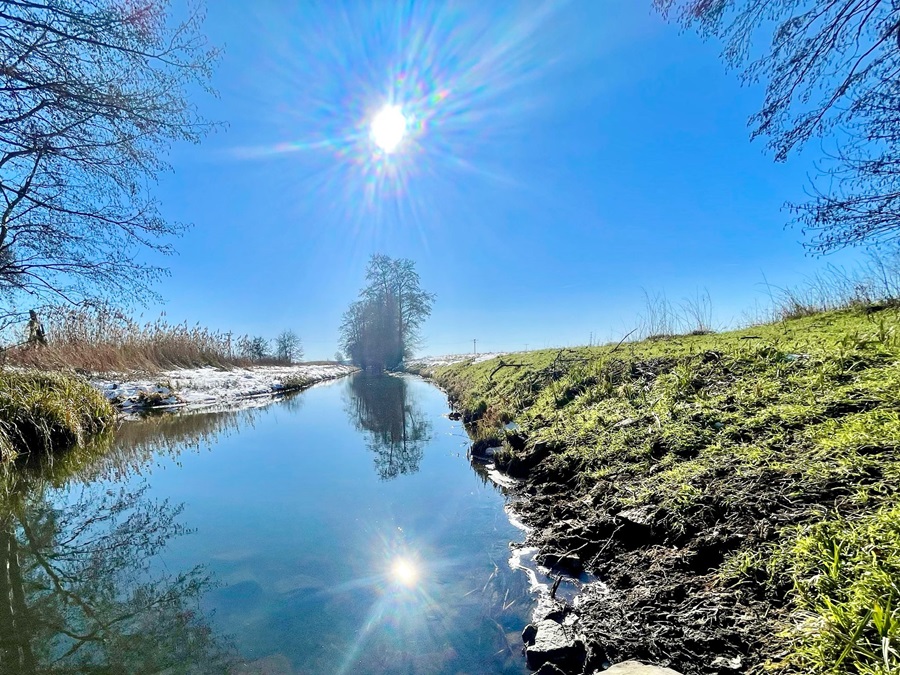 Hobby- und Einsatzfotograf Kay Harzmann ist mit diesem Schnappschuss ein besonderes Bild gelungen: Die Sonne spiegelt sich malerisch im Königgraben bei Böhne. Trotz winterlicher Temperaturen vermittelt das Foto bereits einen Hauch von Frühling.