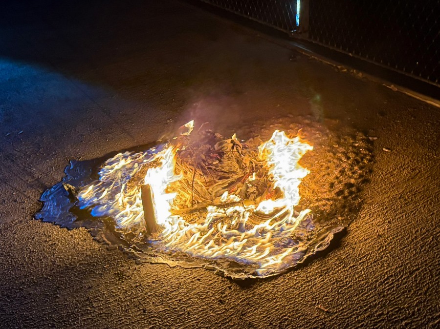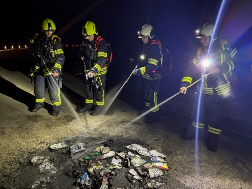 Die Mülltonne und ihr Inhalt brannten vollständig aus. Die Polizei ermittelt wegen Sachbeschädigung und bittet um Hinweise zu den Verursachern.