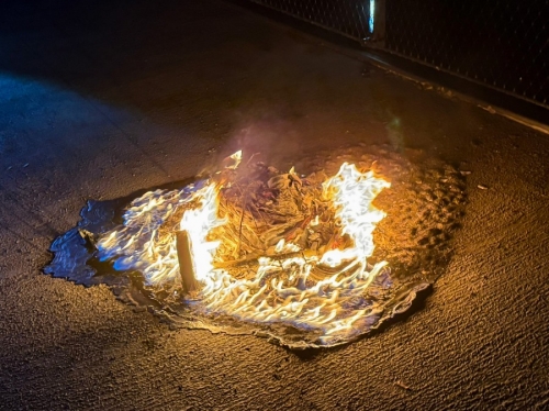 Brennende Mülltonne auf der Weinbergbrücke in Rathenow