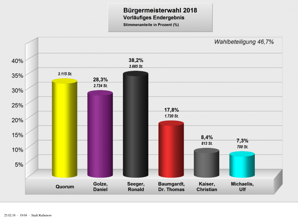 Bürgermeisterwahl in Rathenow: Stichwahl notwendig | In die Stichwahl haben es Ronald Seeger (CDU) und Daniel Golze (Die Linke) geschafft.