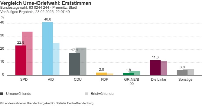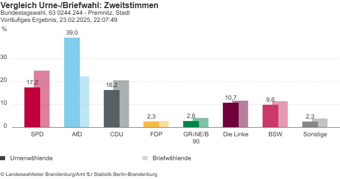 Diese Ergebnisse deuten auf einen signifikanten Wandel im Wählerverhalten in Premnitz hin – mit starken Zugewinnen der AfD und erheblichen Verlusten bei der SPD.