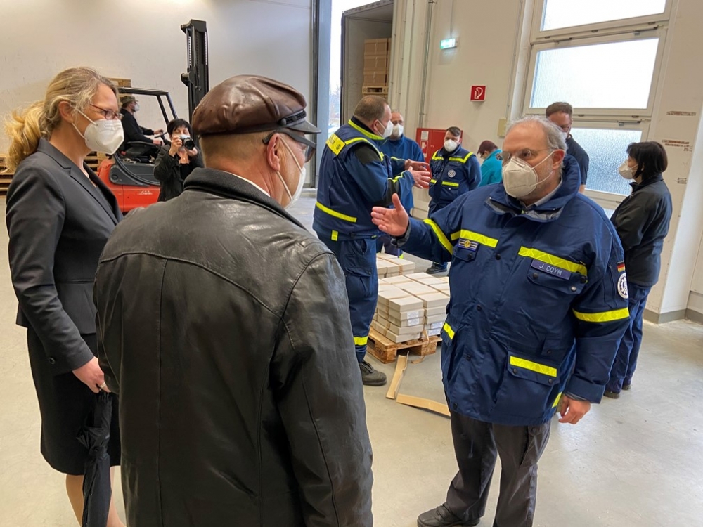Potsdam - Am Donnerstag sind in Brandenburg 300.000 Schnelltests für die Schulen im Land eingetroffen. Die Großlieferung wird vom Zentraldienst der Polizei (ZDPol) organisiert und zusammen mit dem Technischen Hilfswerk (THW) bearbeitet. In 900 Einzellieferungen aufgeteilt, erfolgt im Laufe der kommenden Tage die Auslieferung an alle Brandenburger Schulen. Innenminister Michael Stübgen war beim Eintreffen der Lieferung zugegen und hat sich einen eigenen Eindruck der logistischen Umverteilung gemacht.