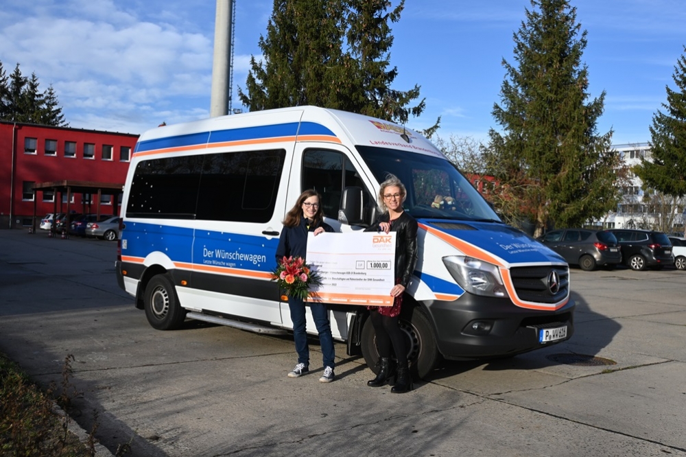 DAK-Beschäftigte spenden 1000 Euro an den Wünschewagen aus Brandenburg