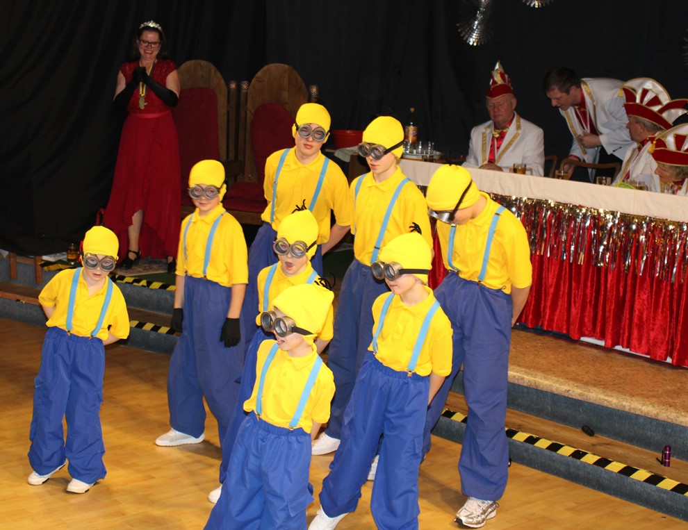 Und der Nachwuchs? Aber hallo! Besonders bezaubernd in diesem Jahr: die kleine Mädchengarde, die Tanzmariechen und Gardemädchen. Mit tänzerischen Interpretationen bekannter Filmmusiken – von Arielle bis hin zu Barbiegirl – sorgten sie mit ausgefallenen Kostümen und unter beeindruckenden Lichteffekten für staunende Gesichter. Und der männliche Nachwuchs? Scheint gesichert! Als Minions zeigte die junge Garde eindrucksvoll, was sie schon auf dem Kasten hat.