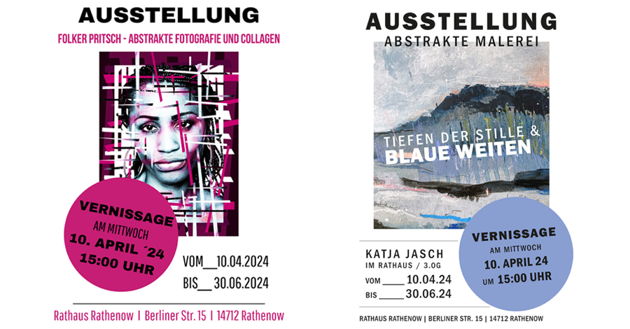 Am Mittwoch, dem 10. April 2024 um 15.00 Uhr, wird eine neue Doppelausstellung im Rathenower Rathaus, Berliner Straße 15 eröffnet.