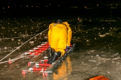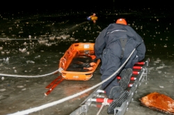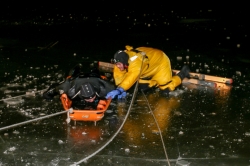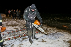 Die Ortsfeuerwehr Premnitz und die Feuerwehr Bensdorf des Amtes Wusterwitz hielten am Abend eine gemeinsame Übung auf dem Premnitzer See ab. Trainiert wurde die Rettung von Personen, die ins Eis eingebrochen sind.