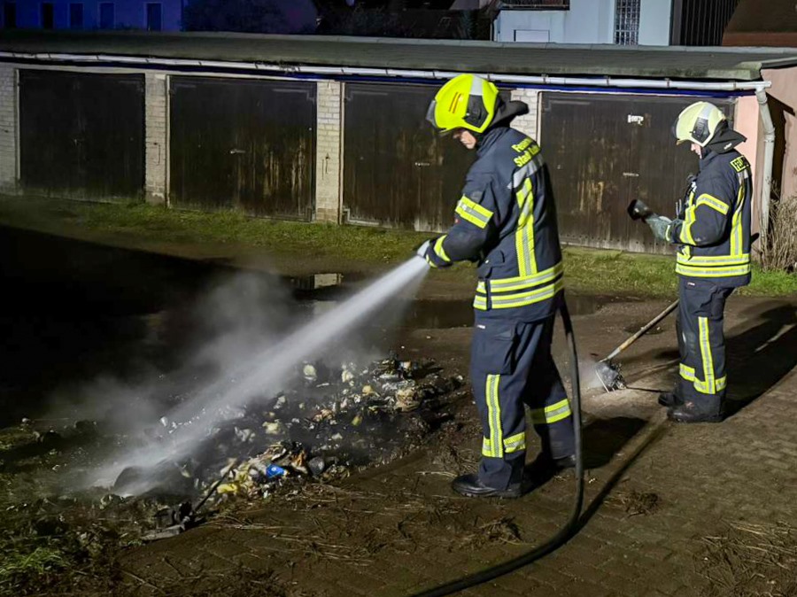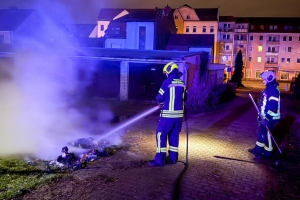 Einsatzkräfte der Feuerwehr konnten den Brand schnell löschen, der sich auf eine gelbe Mülltonne beschränkte. Es entstand ein Sachschaden von etwa 500 Euro.