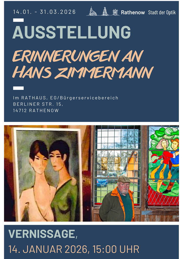 Am Mittwoch, dem 14. Januar 2026, um 15.00 Uhr werden gleich zwei neue Ausstellungen im Rathenower Rathaus, Berliner Straße 15 eröffnet.