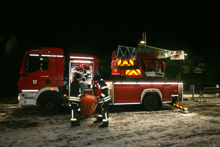 Ziel der Übung war es, wichtige Abläufe zu festigen und die Zusammenarbeit im Team unter winterlichen Bedingungen zu trainieren, um im Ernstfall schnell und sicher helfen zu können.