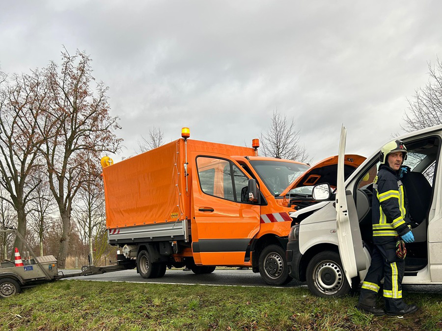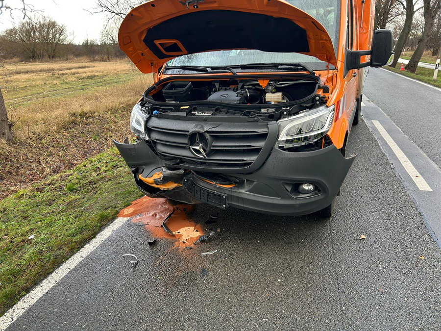Zeugen meldeten am Dienstagvormittag einen Verkehrsunfall auf der Bundesstraße 102. Kurz vor dem Orteingang Rathenow verlor ein 70-jähriger VW-Fahrer die Kontrolle über sein Fahrzeug. Er kam dann vermehrt von der Fahrbahn ab, touchierte mehrere Leitpfosten, ein Verkehrszeichen und geriet schließlich beim Gegenlenken auf die Gegenfahrbahn, wo er dann mit einem stehenden Kleintransporter des Landesbaubetriebes kollidierte.