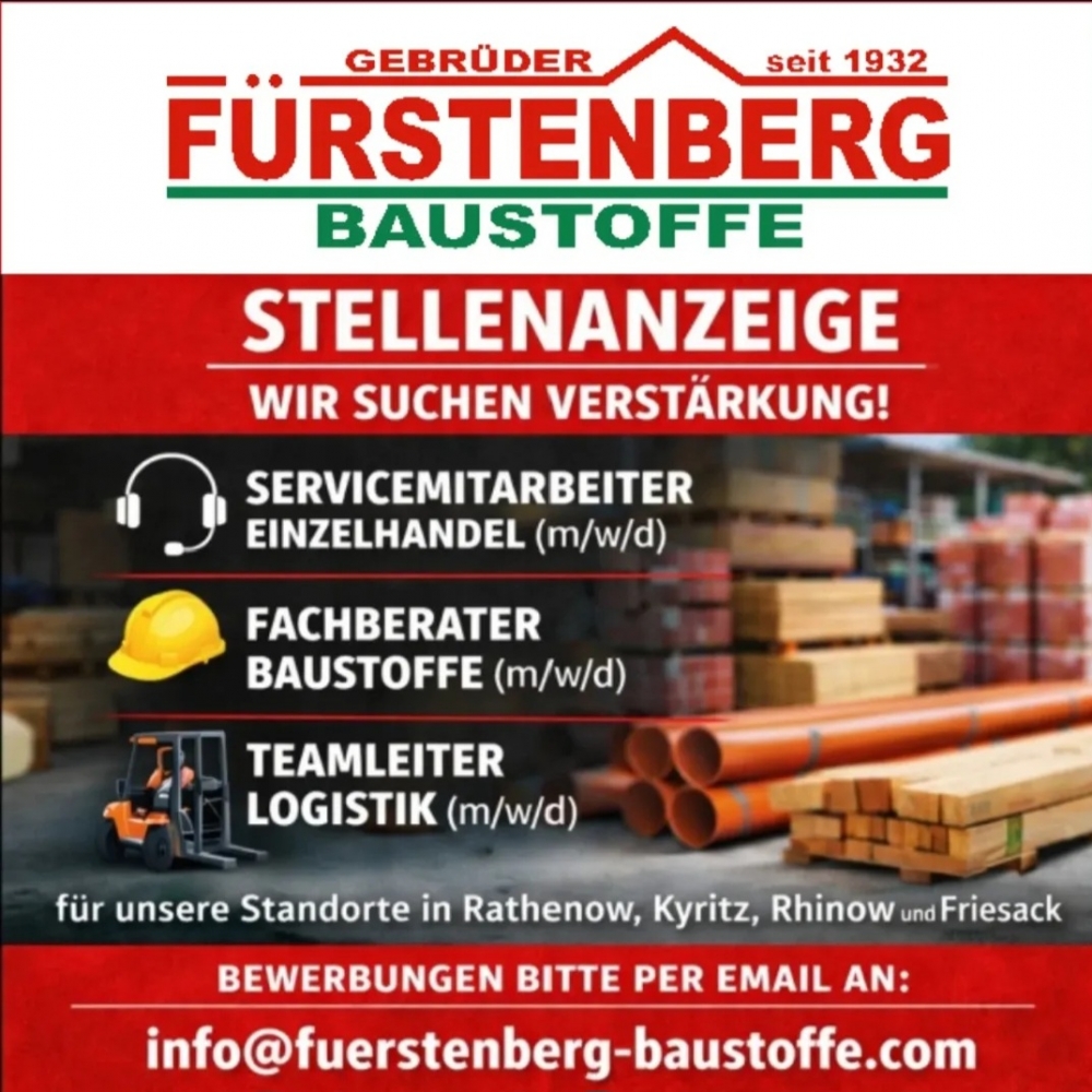 Die Firma Gebrüder Fürstenberg Baustoffe sucht neue Mitarbeiter zur Verstärkung ihres Teams. Für mehrere Standorte in der Region werden engagierte Kräfte in verschiedenen Bereichen gesucht.