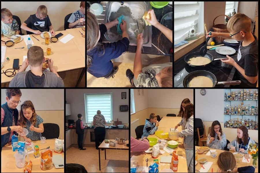 Um die Küche nicht als „Schlachtfeld“ zu hinterlassen - und natürlich um ein nächstes Mal wieder kommen zu können – packten Groß und Klein beim auf Räumen, Abwaschen sowie dem Säubern des Küchenraumes mit an.