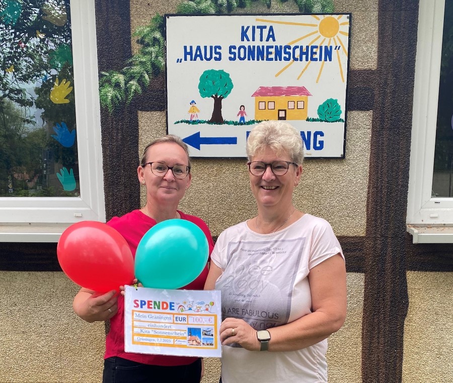 Heute war es dann so weit: Die Spende konnte durch Gräningens Ortsvorsteherin, Andrea Willrich, an die Leiterin der Kita, Anke Lange, übergeben. Die Freude war groß – das Geld soll in neue Spielsachen für die Kinder investiert werden.