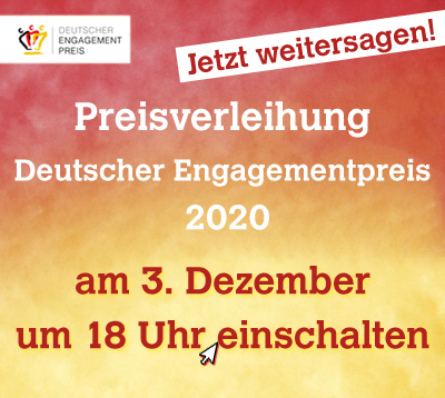 Für den Dachpreis Deutscher Engagementpreis konnten ausschließlich die Preisträgerinnen und Preisträger anderer Preise, die freiwilliges Engagement in Deutschland auszeichnen, nominiert werden. Bekannt gegeben werden die Gewinnerinnen und Gewinner aller sechs Preise bei einer Preisverleihung am 3. Dezember in Berlin, die mittels Live-Stream u.a. auf www.deutscher-engagementpreis.de/preisverleihung2020 und Partnerwebsites übertragen wird.