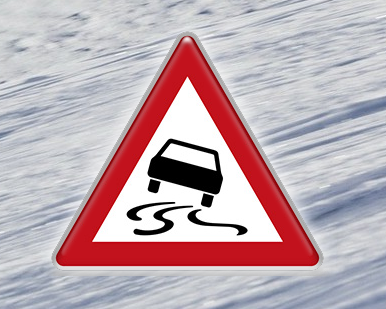 Hinweis auf Rutschgefahr. Handlungsempfehlungen: Verhalten im Straßenverkehr anpassen