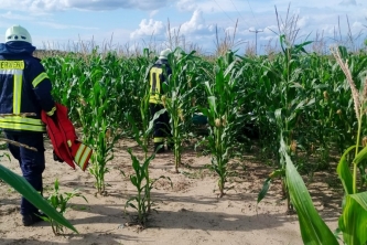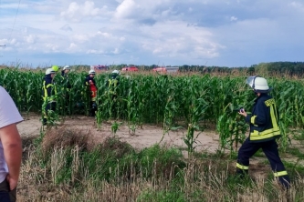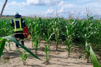 Polizei und Rettungsdienst sind am Mittwochnachmittag zu einem Maisfeld an der Landesstraße 96 gerufen worden. Ein Zeuge hatte dort in dem Feld ein verunfalltes Motorrad, eine Harley-Davidson, aufgefunden. Augenscheinlich war das Motorrad zuvor von der Fahrbahn abgekommen und schwer beschädigt worden. Vom Motorradfahrer fehlte jede Spur. Auch eine Absuche mit Unterstützung einer Drohne konnte keinen verantwortlichen Fahrer in der näheren Umgebung ausmachen.