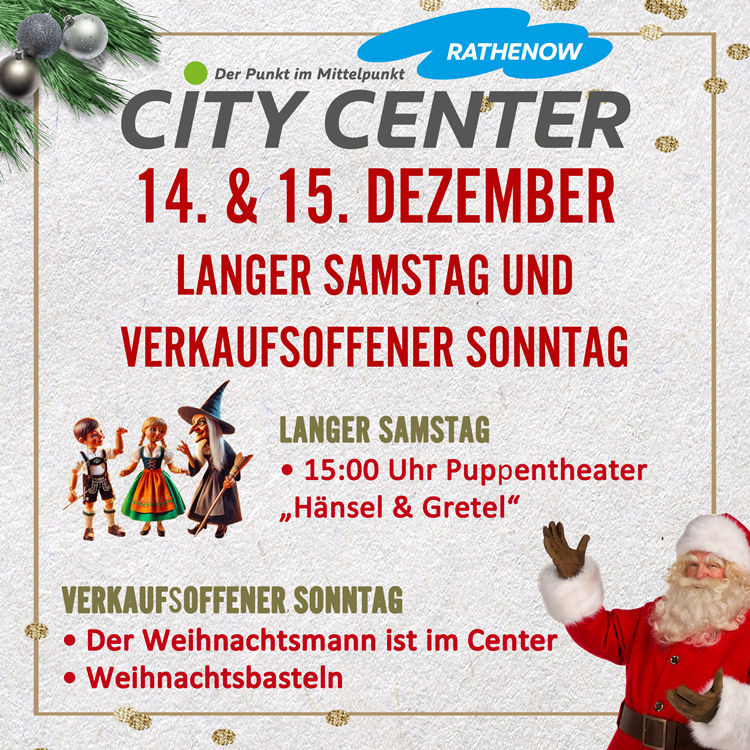 Am Samstag, den 14. Dezember, erwartet Sie um 15:00 Uhr ein Puppentheater mit „Hänsel & Gretel“ im City Center Rathenow.