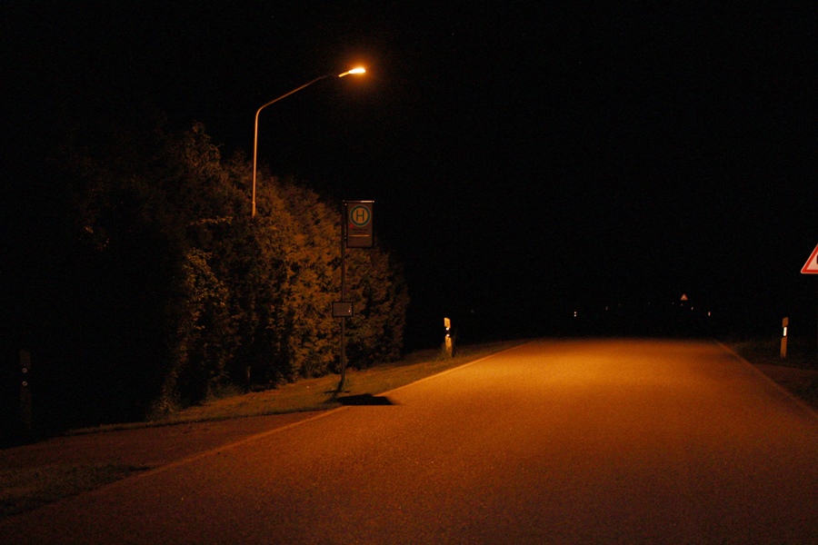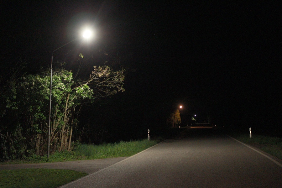Ein Vergleich mit gleicher Kameraeinstellung zeigt: Die neuen LED-Leuchten blenden weniger, leuchten die Straße besser aus und spenden angenehmeres Licht.