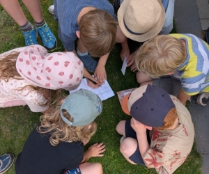 Was sie erwartete, war kein einfacher Spaziergang: Kleine Lieder- und Tierrätsel, Rechenaufgaben, Schilder deuten und andere geheimnisvolle Hinweise bzw. versteckte Zeichen führten die Gruppen von Station zu Station. Wer klug kombinierte, genau hinschaute und gut im Team arbeitete, kam dem verborgenen Schatz immer näher. Und tatsächlich: Am Ende wurde er gefunden – mit strahlenden Gesichtern bargen die Kinder den Schatz: eine echte Schatzkiste! Der Inhalt belohnte die fleißigen Schatzsucher neben einer Medaille mit jeder Menge Kleinigkeiten, so z. B. mit Minirückziehautos, Bounce Bällen, Tischtennis-Sets, kleinen Kugelspielen, Minitaschenlampen, Fangspielen, Badmintonschläger, Tattoos, Sticker, Haarschmuck, Armbänder, Buntstifte, Pixibücher und so weiter – und natürlich auch mit so einigen Süßigkeiten.