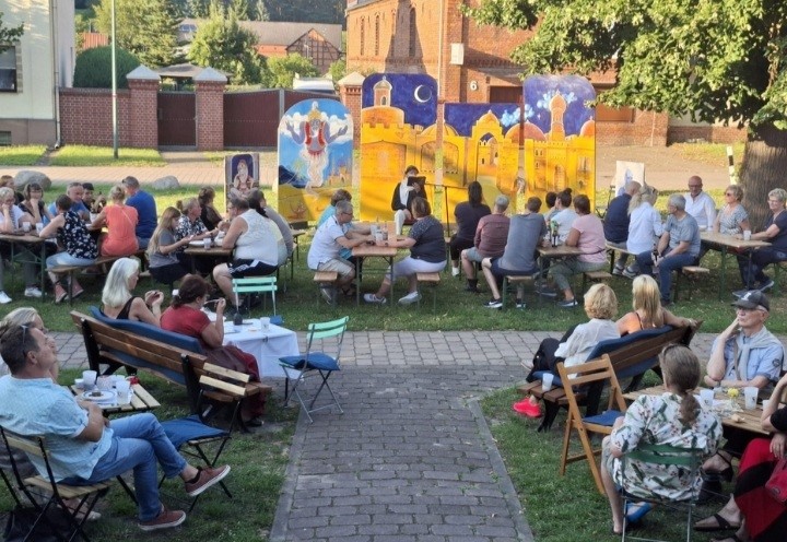 Am Samstagabend schien das Gärtnerhaus selbst verzaubert: Es funkelte in warmem Licht, der Duft exotischer Gewürze lag in der Luft, leise orientalische Klänge umspielten die Sinne – und plötzlich fühlte man sich wie auf einem Basar aus Tausendundeiner Nacht. Mit Sorgfalt und viel Hingabe hatten die Mitglieder des Kulturvereins Nennhausen e.V. diesen „Orientalischen Abend“ vorbereitet – und der Aufwand hatte sich gelohnt.