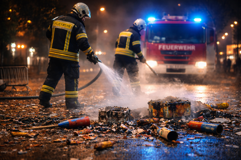 Die Feuerwehr weist darauf hin, dass zurückgelassene oder noch heiße Feuerwerksreste auch nach Mitternacht eine erhebliche Brandgefahr darstellen können.