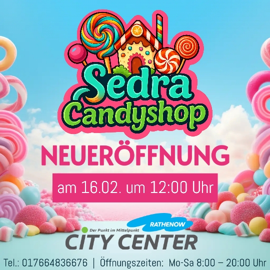 Am 16. Februar 2026 um 12:00 Uhr eröffnet im City Center Rathenow ein neuer Candy Shop – mit separatem Eingang von der Mittelstraße.