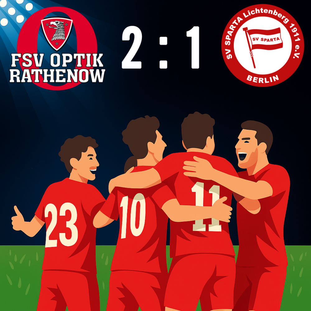 Der FSV Optik Rathenow hat das Nachholspiel des 17. Spieltags in der NOFV-Oberliga Nord erfolgreich gestaltet. Im heimischen Stadion Vogelgesang setzten sich die Havelländer am Mittwochabend mit 2:1 gegen den SV Sparta Lichtenberg durch.