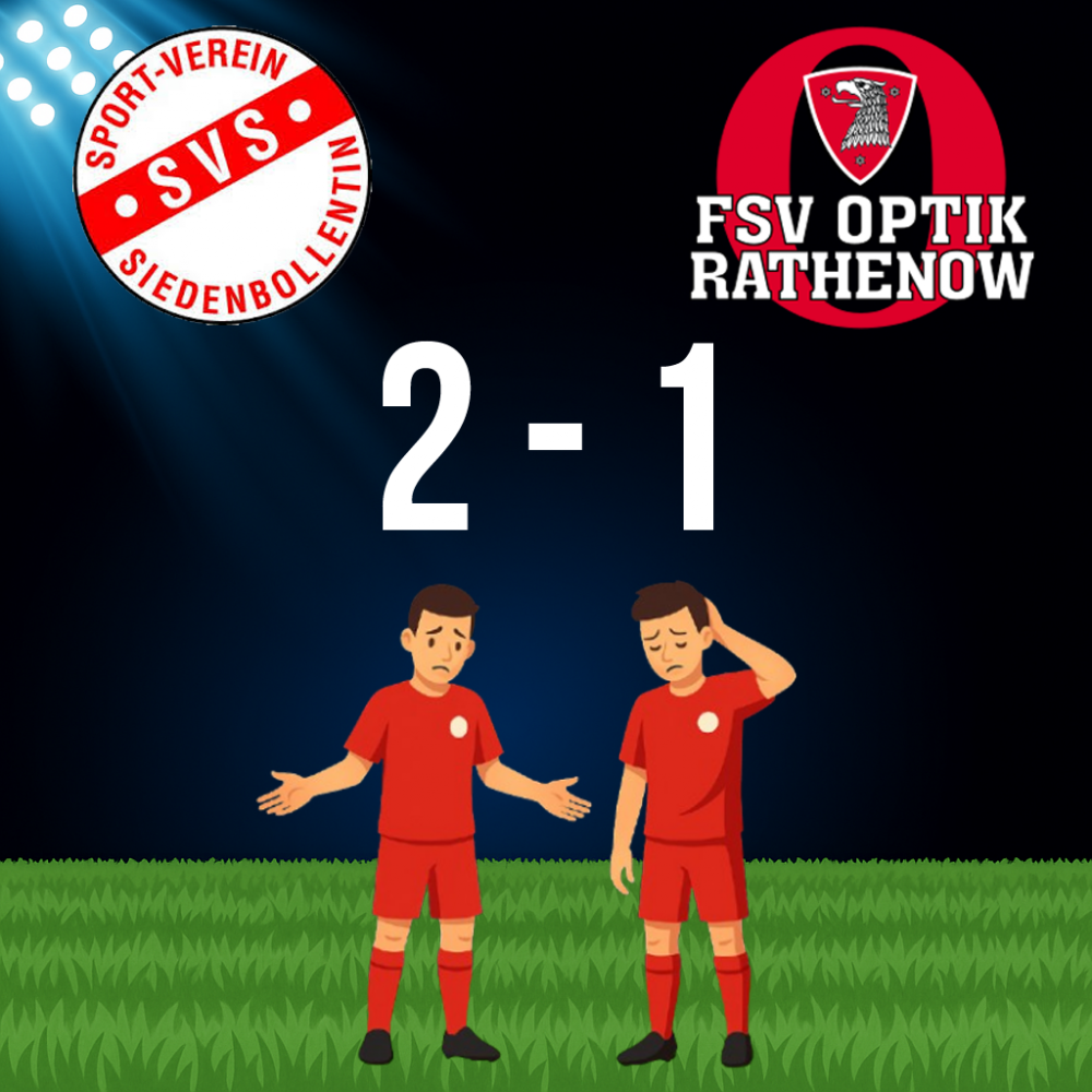 Der FSV Optik Rathenow hat am Samstag beim SV Siedenbollentin eine knappe 1:2-Niederlage einstecken müssen. Nach dem frühen Rückstand zeigte die Mannschaft eine gute Reaktion und kam noch vor der Pause zum Ausgleich durch Nnanna Onu. Auch im weiteren Verlauf blieb die Begegnung offen, sodass lange alles auf eine Punkteteilung hindeutete. Erst in der Schlussphase setzte Siedenbollentin den entscheidenden Treffer und sicherte sich damit die drei Punkte.