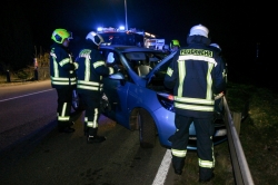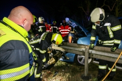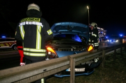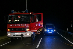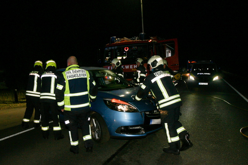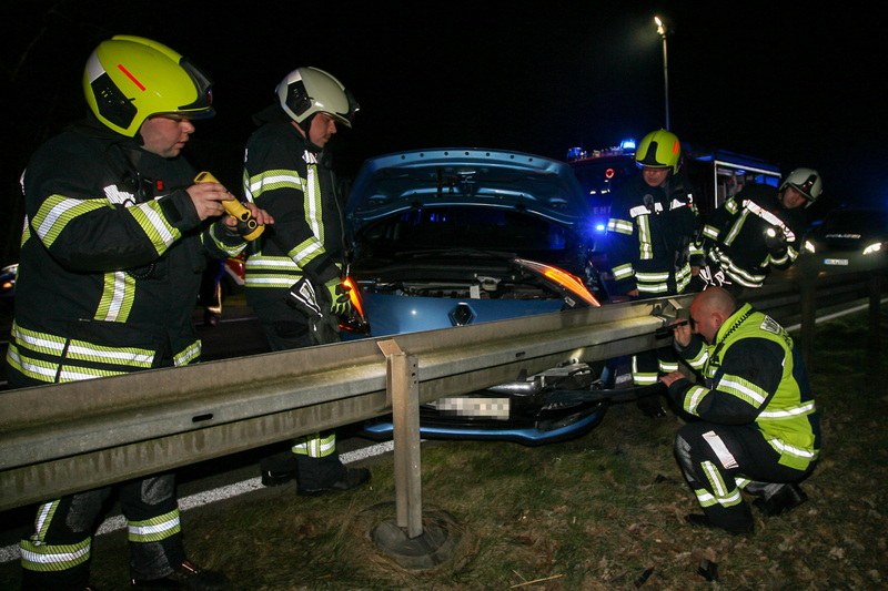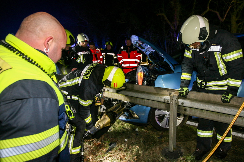 Die Feuerwehr musste das verkeilte Fahrzeug zunächst mit einem hydraulischen Spreizer lösen, bevor es mithilfe einer Seilwinde aus der Leitplanke gezogen werden konnte. Der stark beschädigte PKW war nicht mehr fahrbereit und wurde auf eine nahegelegene Freifläche geschoben. Nach der Reinigung der Fahrbahn durch die Feuerwehr konnte die Straße um 00:17 Uhr wieder freigegeben werden.