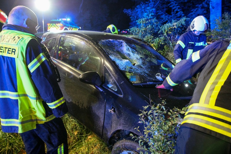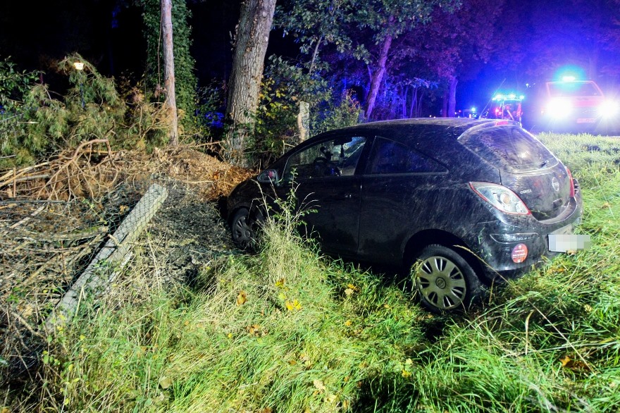 Am Sonntagabend befuhr der Fahrer eines Opel Corsa gemeinsam mit einem weiteren Insassen die Landesstraße 96 in Richtung Steckelsdorf. Nach ersten Erkenntnissen verlor der Fahrer aufgrund eines Lenkfehlers die Kontrolle über das Fahrzeug, kam nach links von der Fahrbahn ab und kollidierte in der Folge mit einem Zaun.