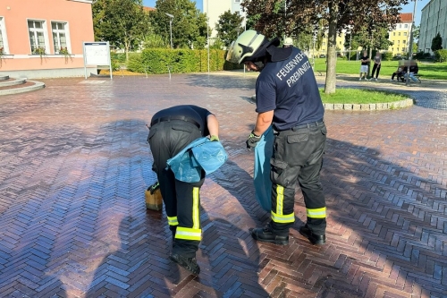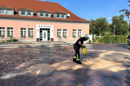 Die Ortswehr Premnitz wurde am Montagabend zu einem ungewöhnlichen Einsatz auf den Rathausvorplatz gerufen: Dort hatten vier junge Heranwachsende offenbar den Ferienbeginn gefeiert, indem sie ihre „Driftkünste“ mit Fahrrädern ausprobierten. Zur besseren Rutschfähigkeit verteilten sie rund drei Liter Öl auf den Pflasterklinkern.