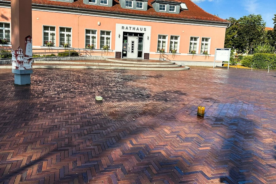 Premnitz – Ölspur auf Rathausvorplatz durch „Fahrrad-Drifter“ verursacht