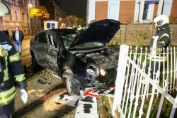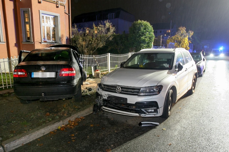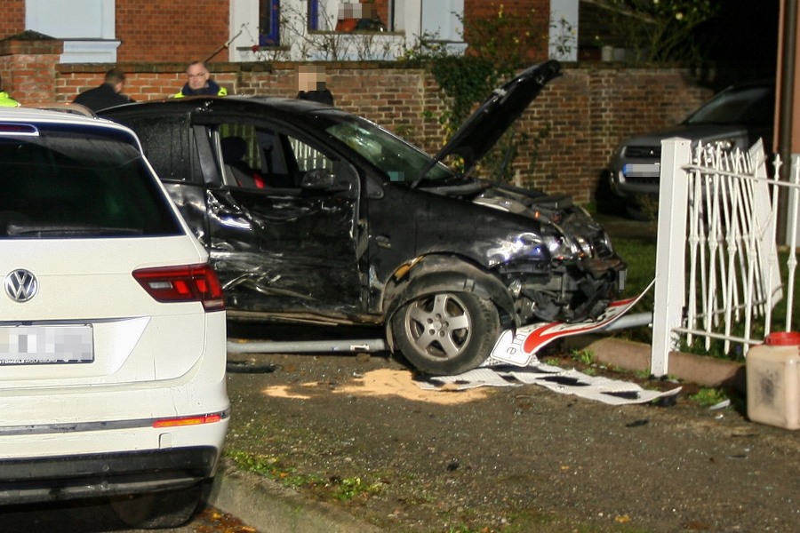 Nach bisherigen Erkenntnissen kam ein Pkw aus bislang ungeklärter Ursache nach links von der Fahrbahn ab, stieß gegen ein geparktes Fahrzeug und durchbrach anschließend einen Grundstückszaun.