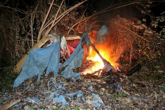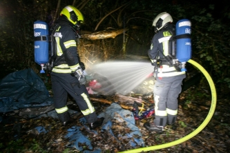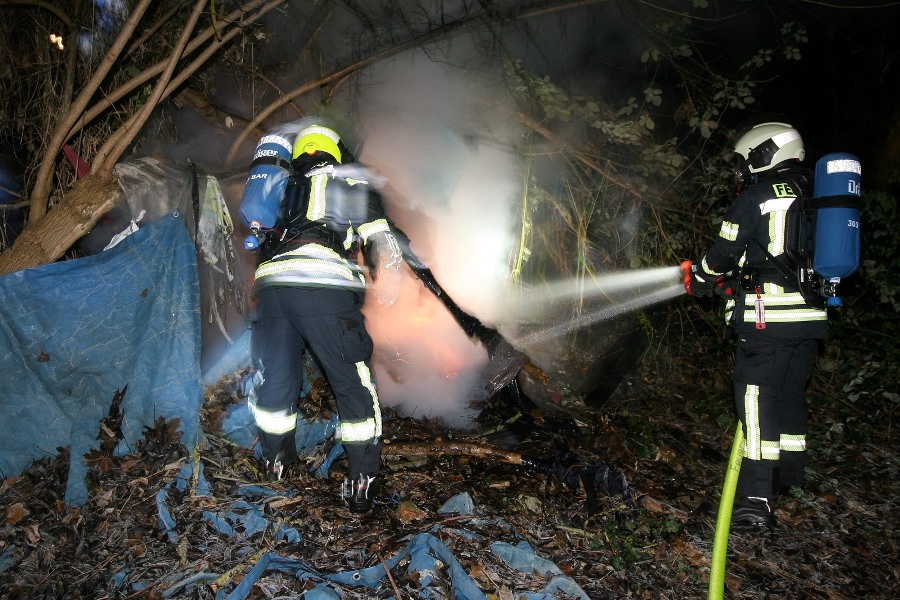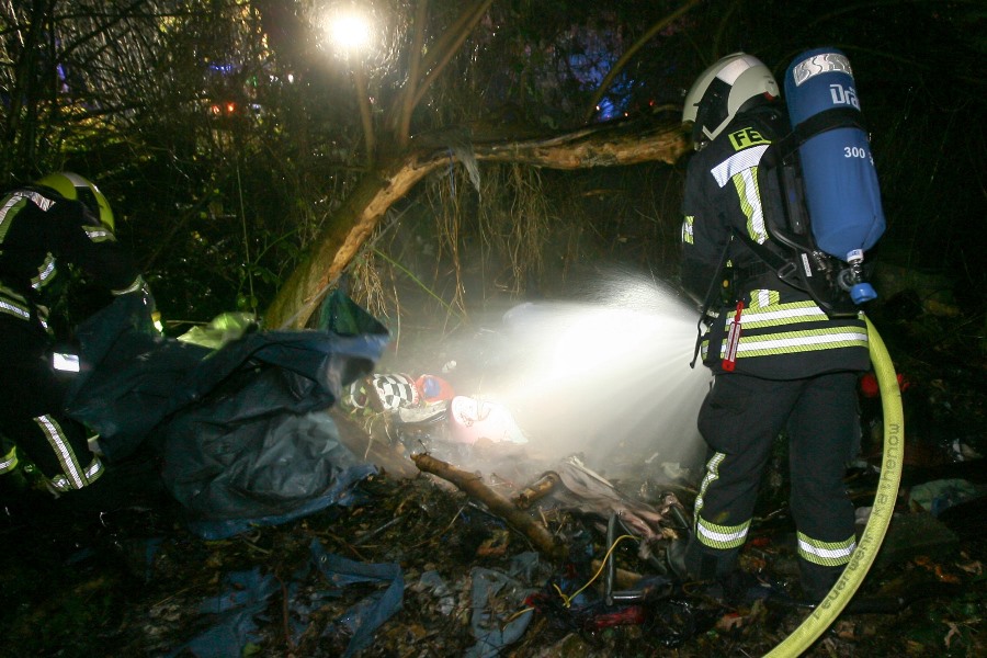 Am frühen Sonntagabend gegen 17:30 Uhr wurde die Feuerwehr Rathenow erneut zu einem Brand im Gebüsch zwischen dem alten Körcenter und dem Reiterplatz alarmiert. Vor Ort brannte ein provisorischer Unterstand aus Planen und Ästen lichterloh.