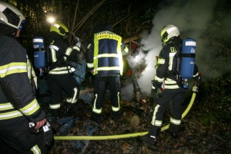 Die Einsatzkräfte löschten den Brand zügig und verhinderten eine Ausbreitung auf das umliegende Gehölz. Personen wurden nicht verletzt. Die Polizei hat Ermittlungen zur Brandursache aufgenommen.