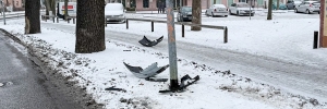 Rathenow: PKW prallt im Kreisverkehr gegen Laterne