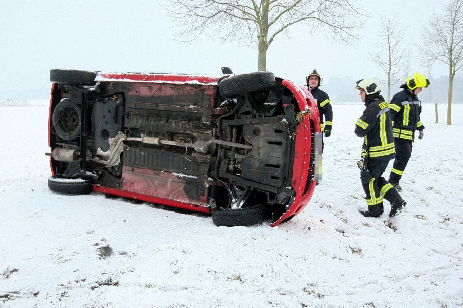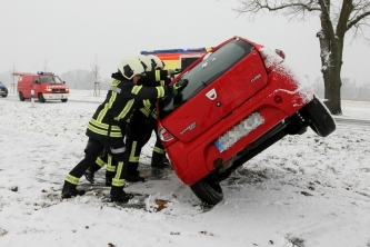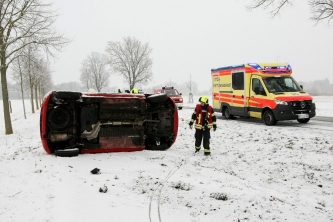 In der Rhinower Landstraße überschlug sich ein PKW und blieb auf der Seite liegen. Der Fahrer wurde mit leichten Verletzungen in das Krankenhaus Rathenow gebracht.