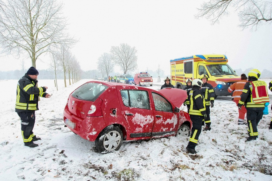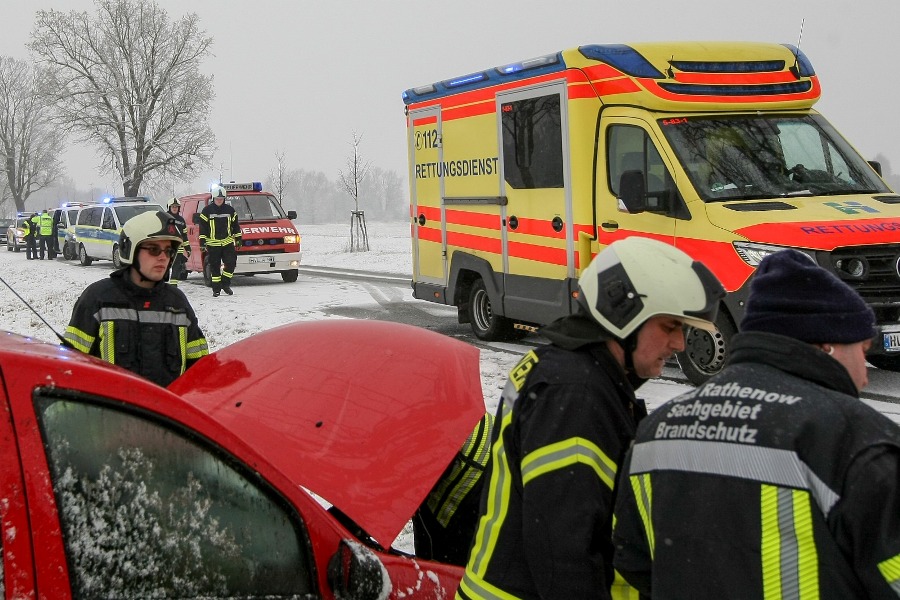 Starker Schneefall und spiegelglatte Straßen haben am Nachmittag in Rathenow zu mehreren Unfällen geführt.