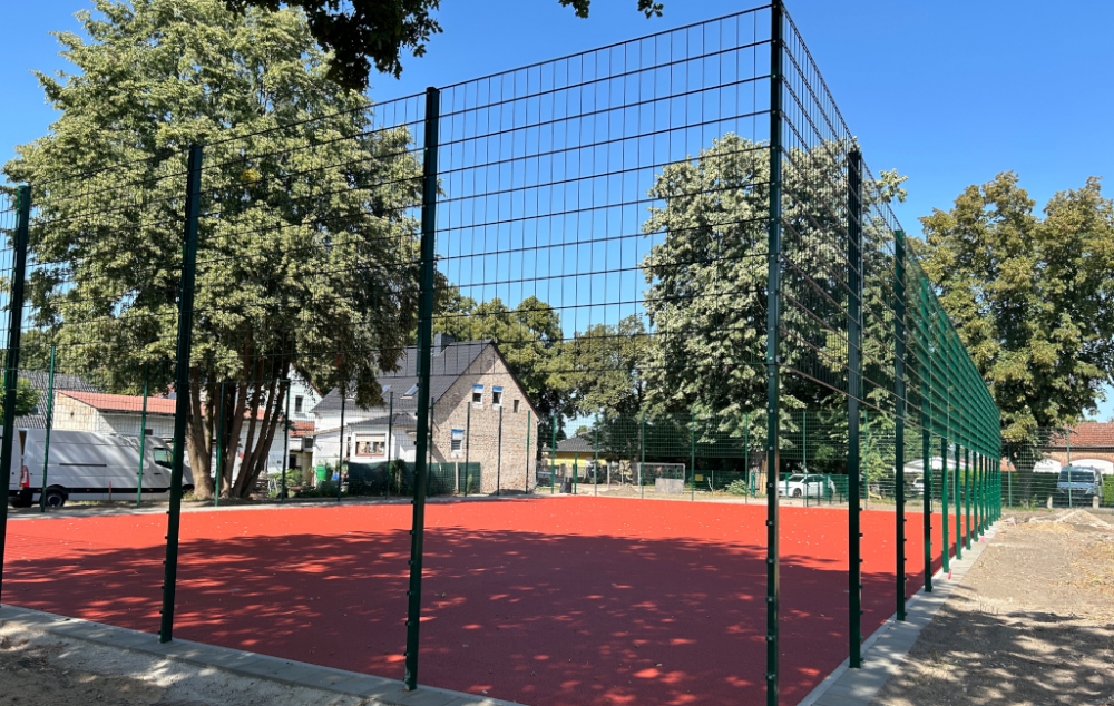 Zuvor war das Gelände übergangsweise mit Containern bebaut, in denen der Unterricht während der Sanierung und des Neubaus der Schule stattfand. Mit der Fertigstellung erhält der moderne Schulkomplex nun auch einen zeitgemäßen Sportplatze, der den Standort komplettiert.