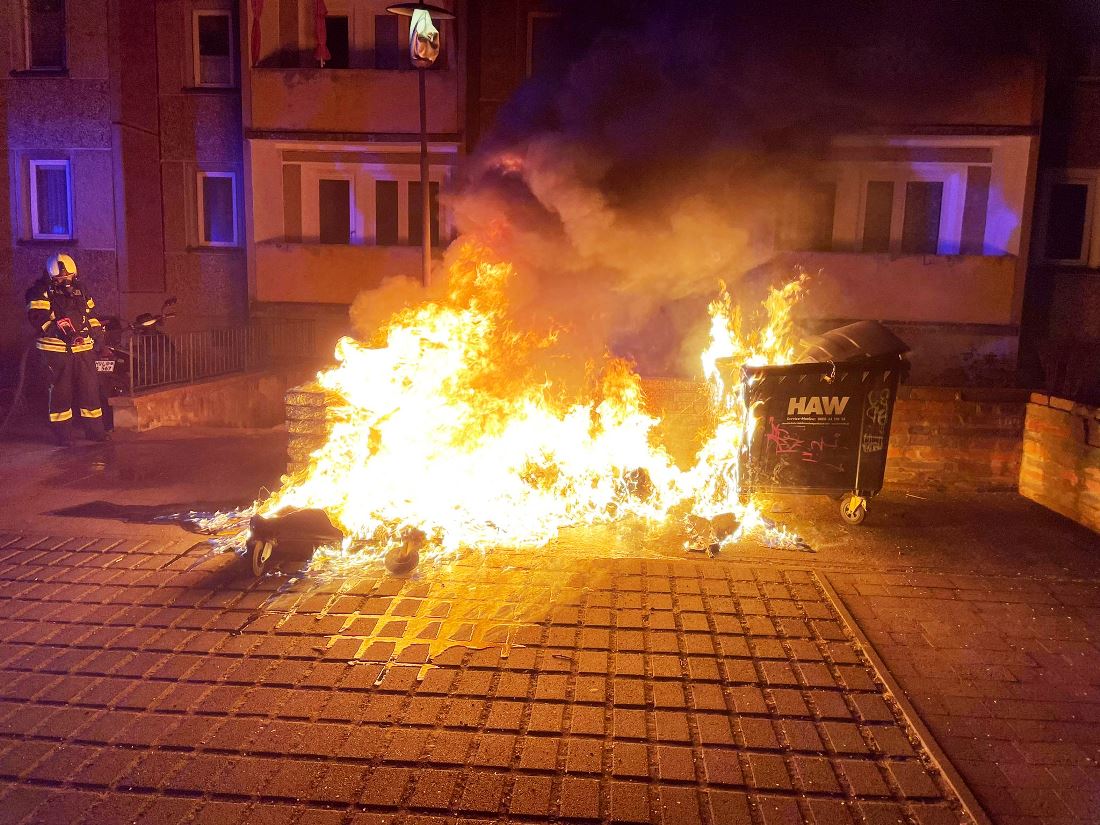 Rathenow, Stadtgebiet: Mehrere Mülltonnen in Brand geraten