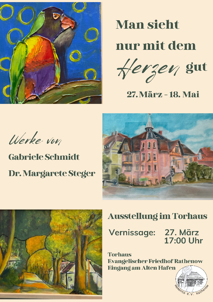 Am Freitag, 27. März, um 17 Uhr lädt der Verein Memento e.V. zur Vernissage in das Torhaus auf dem evangelischen Friedhof in Rathenow ein.