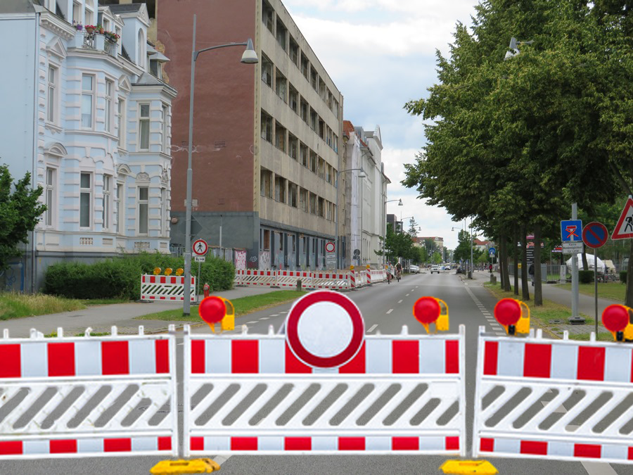 Umleitungen werden ausgeschildert und führen über Friedrich-Ebert-Ring, Curlandstraße und Fehrbelliner Straße.