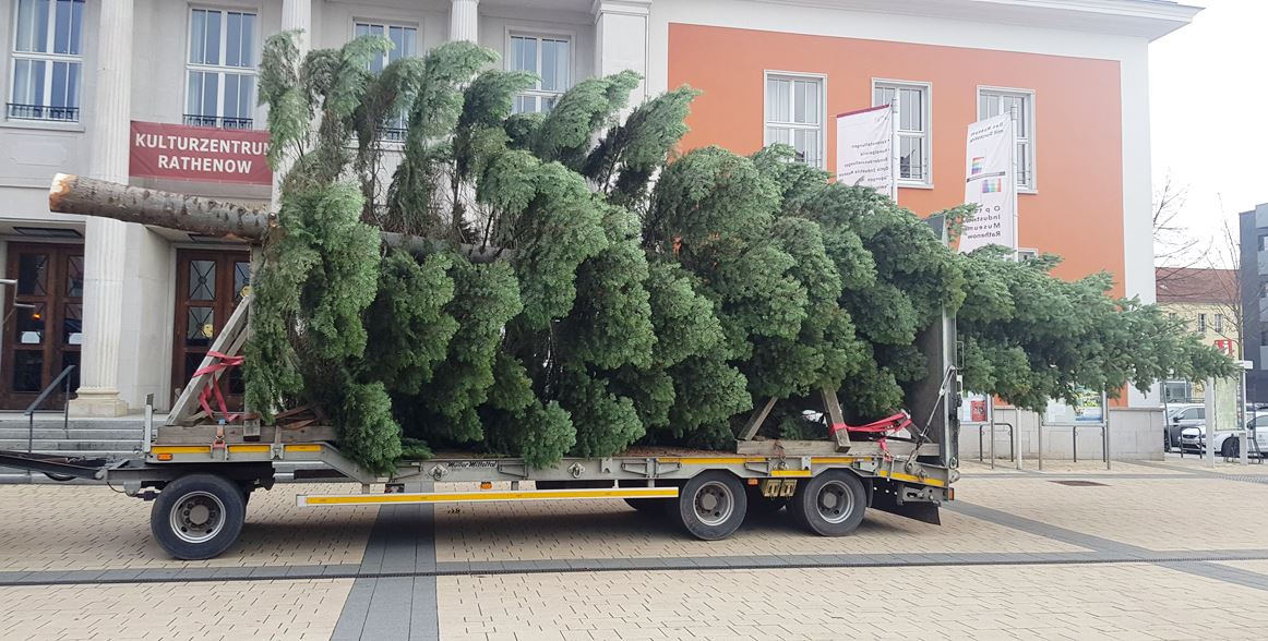 Am Dienstag, den 17. November 2020 wurde der Weihnachtsbaum auf dem Märkischen Platz in Rathenow aufgestellt. Die 15 Meter hohe Edel-Tanne hatte keine lange Anreise. Aufgewachsen in der Genthiner Straße wurde sie nun von einem Bürger der Stadt zur Verfügung gestellt. Im Lichterglanz erstrahlt sie jedoch erst ab der nächsten Woche, da die Vorweihnachtszeit traditionell erst nach dem Totensonntag beginnt.