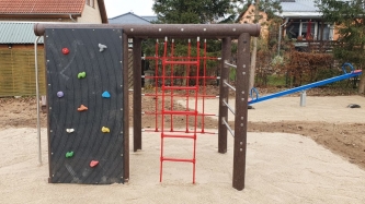 Auch auf dem Spielplatz im Trappenweg hat der Betriebshof eine neue Kletteranlage, eine Balancierstrecke und einen Sandkasten im Gesamtwert von 10.000 Euro aufgestellt. Die Erstabnahme ist erfolgt und die Spielgeräte können nun genutzt werden.